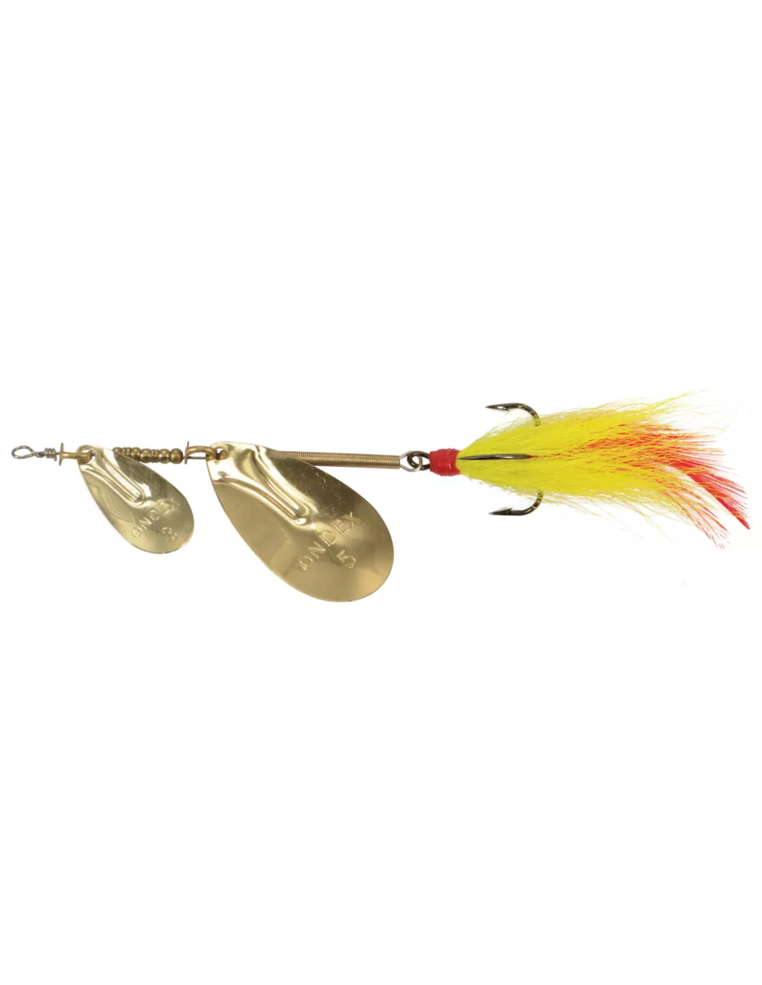 De ondex spinner is in 1953 ontwilkkeld door nelis vogel en was EEN van de eerste onverzwaarde spinners in Europa. Sindsdien is zijn ondex spinners onge-evenaard in vangkracht. Mede daarom blijft de ondex spinner de nummer 1 van de onverzwaarde polderspinners. Inmiddels is naast het alom bekende model met het rode wollen draadje aan de achterzijde ook een model wat voorzien is van bucktail, wat deze uitvoering wat voller en wat grover maakt. Ook deze uitvoering van de Ondex spinners zullen met stip in de top van de polderspinners terecht gaan komen.